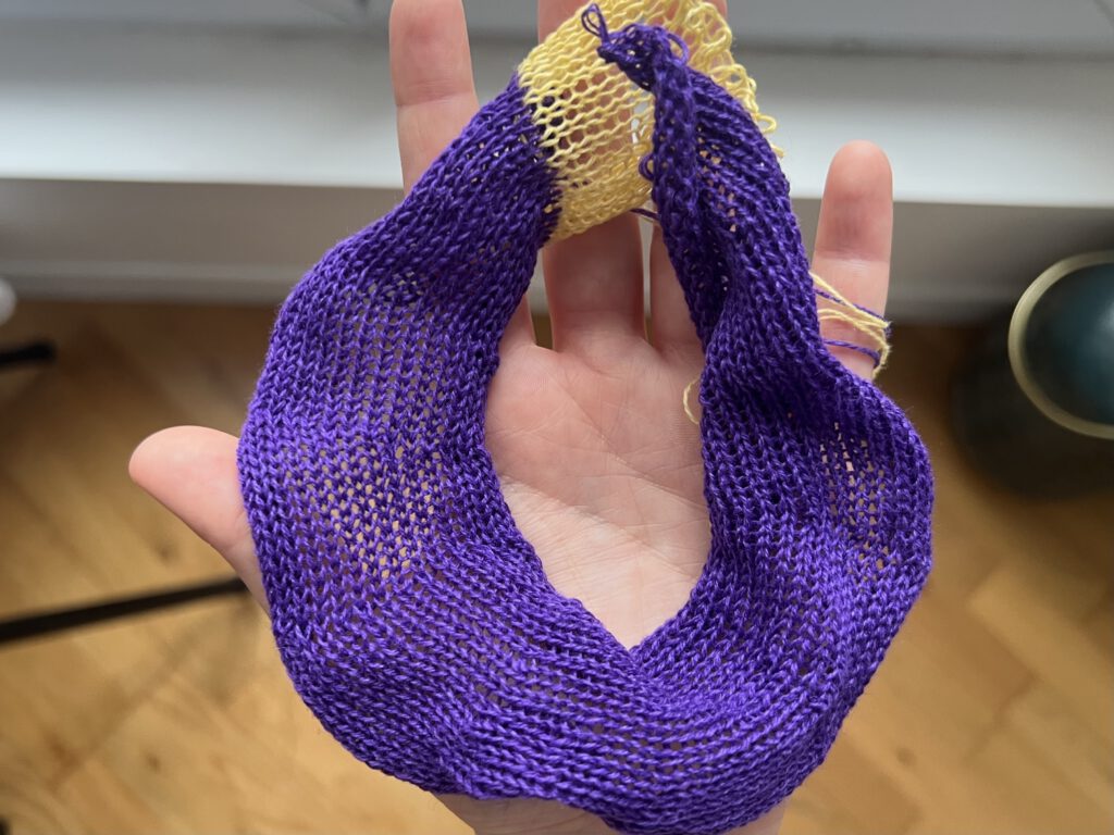 Knit circle on my machine – some short row tests and adding and removing stitches every few rounds