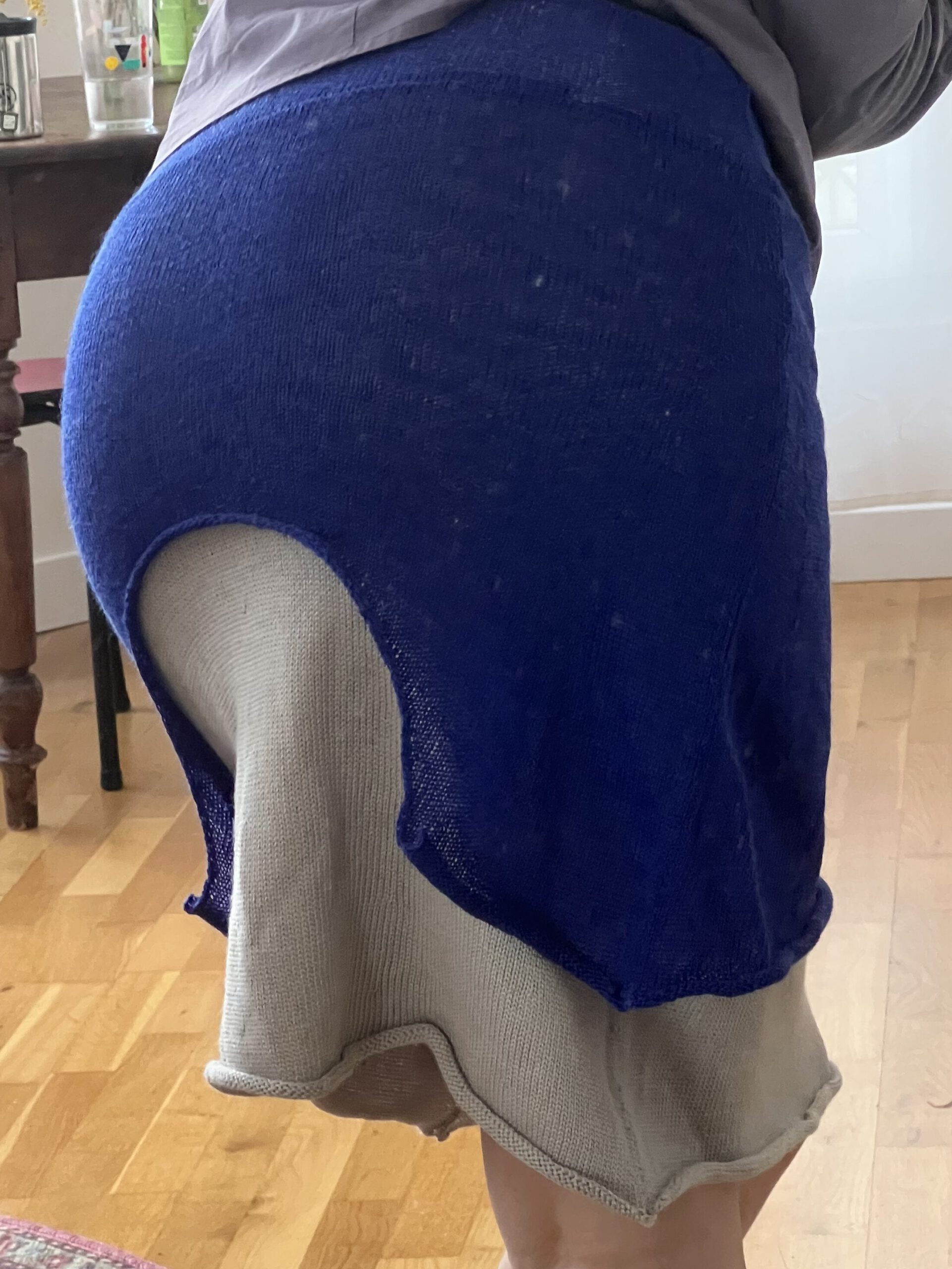 Stiff natural-dyed hand knit dress that made my fingers bleed while knitting